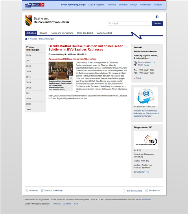 我校师生深入阿尼姆中学课堂、入住德国结伴家庭,深度体验德国中学生生活和学习,了解德国柏林当地的风土人情和文化氛围。该校所在的柏林Reinickendorf区政府网站还对本次交流活动进行了报道。
