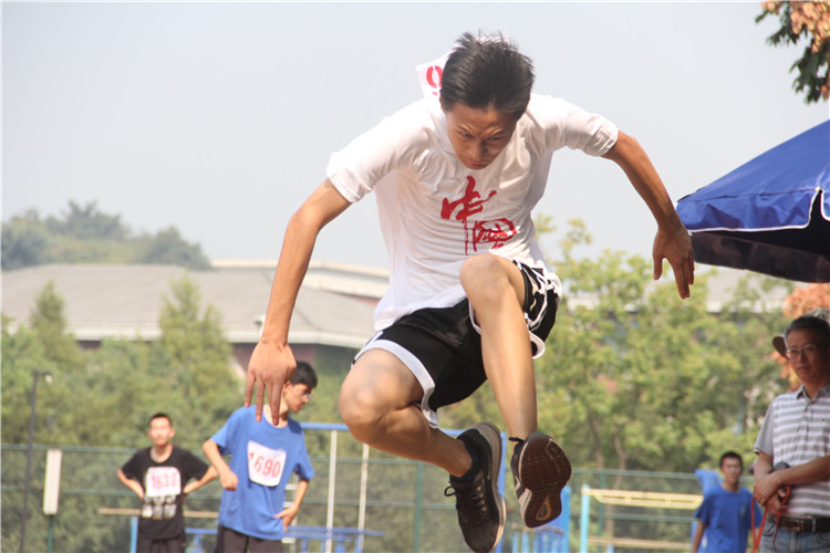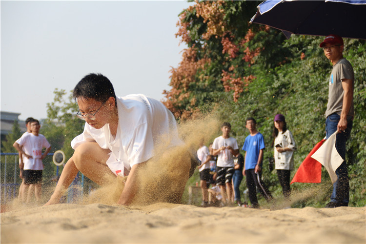 记者:你好,你是因为自己比较擅长跳远所以报的这个项目还是被你们班坑来的?
