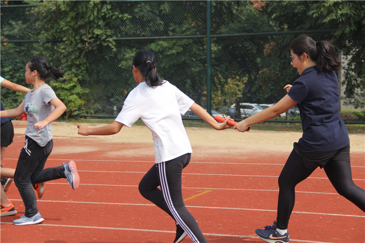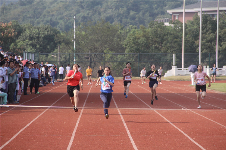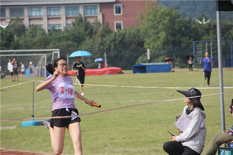 A:我去年跳高脚扭伤了,没有参加4*100。但今年因为我适合短跑,班里也没有人参加了,所以我就上了,我觉得这个项目是团体的力量,我们没有一次掉棒,大家都跑得很快也就得了第一名。