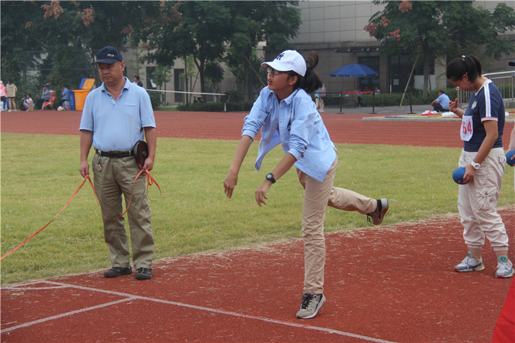 A:有,就是暑假快结束的时候,跟我爸爸一起去练习实心球。然后我爸爸认识一个阿姨,她也是个体育老师,就会教我一些动作。