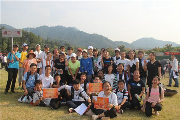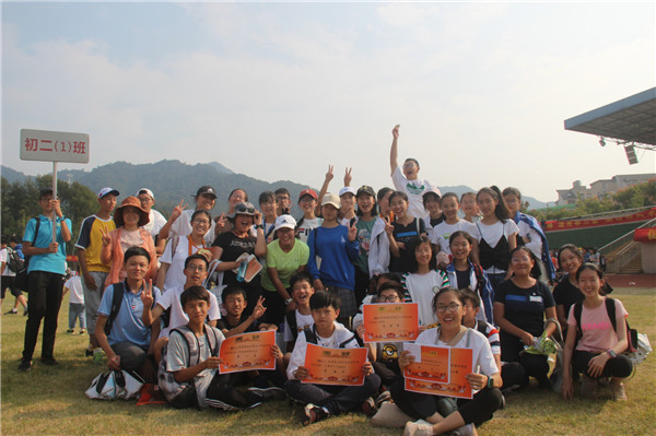 在阳光下,同学们举起班牌合影。此刻,我们知道这170分的来历——它不是奇迹,它是初二(1)班同学团结一心,努力奋斗的体现。它是热血也是汗水,是一次创造,是一次“飞跃”,是九月末最温暖的记忆。