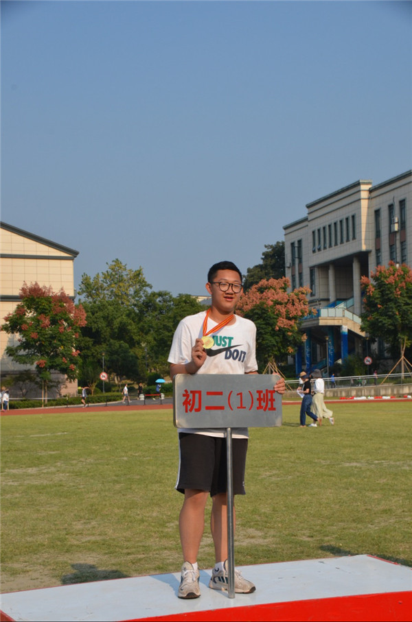 去年的那天,一样的时间,一样的人,一样的比赛,我拿到了进入杭外以来的第一个荣誉——实心球冠军!那时的我,初来乍到,记不全同场竞技的对手,只是“9.8米”的数字,还记忆犹新。是不是要冲击两位数?思忖着,我的嘴角微微上扬,我依旧是那个渴望冠军的少年。