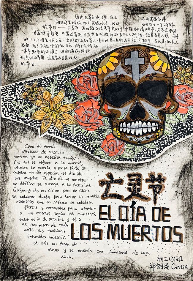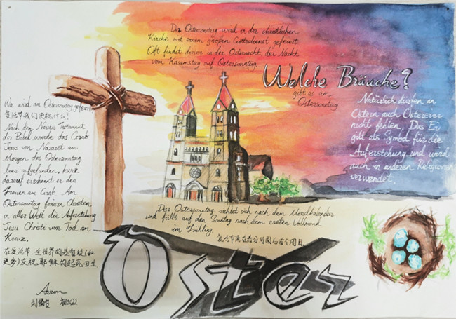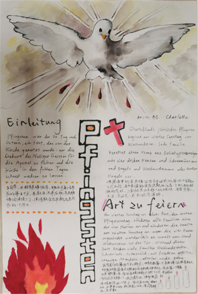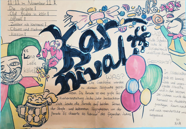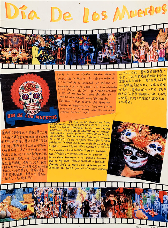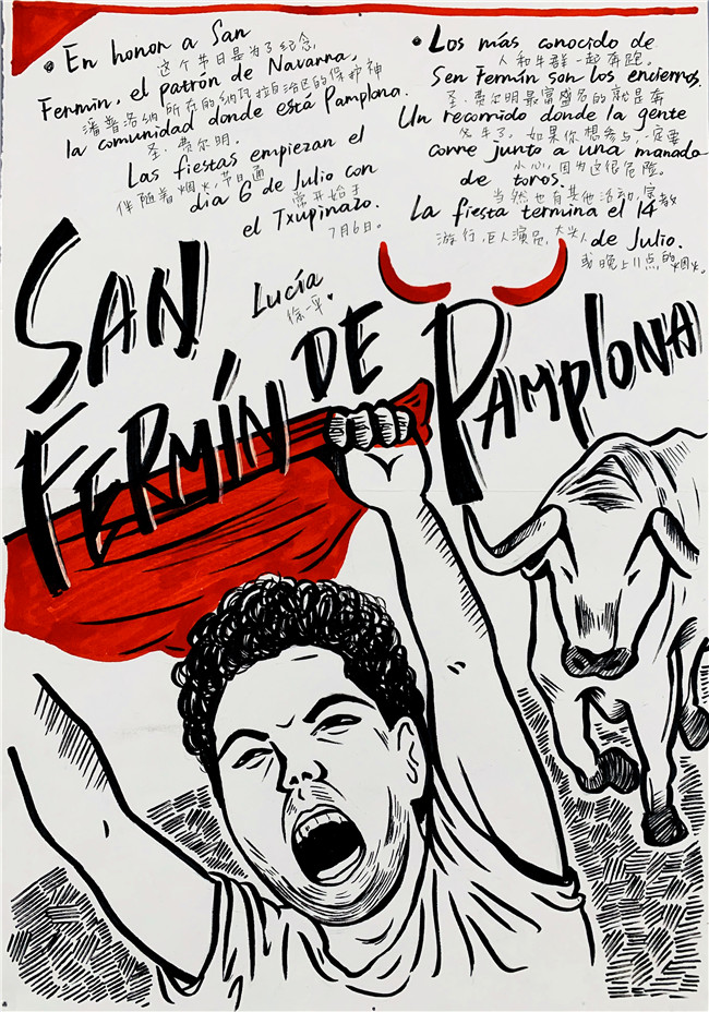 一周前,各个语种还进行了优秀节日海报的评选与展示。同学们用精美的图文展示了自己所了解到的节日与风俗。