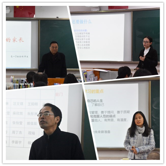 下午13点30分,家长会准时举行。学生处副主任孙东波老师结合实例向家长们汇报了德育工作情况。他从培养学生优秀品质的角度阐述了学校德育工作的重要性,并对家长教育孩子进行了具体指导。他指出,高一年级半个多学期以来,通过全年级班主任及任课老师的共同努力,班级的凝聚力不断增强,学生参与活动积极性高,展现了阳光自信的精神面貌。同时,孙老师希望家长学会关爱孩子的身心健康,不一味追求成绩;家庭教育思想要统一,要尊重孩子差异的存在。