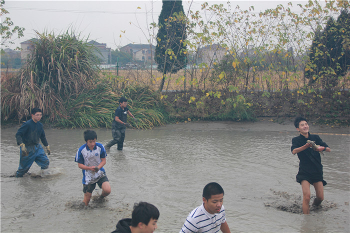 在学农之前,农田生活只是在我们心中的幻想,可能是陶渊明“采菊东篱下,悠然见南山”般的飘逸,亦或者是王右丞“白水明田外,碧峰出山后”般的雅致。但真正身处农田,才知农活之苦。在天未破晓时,我们就必须整装待发去迎接一天的紧张任务。在寒风瑟瑟的玉米地里,我们用着最诚挚的心去寻找那胜利的果实;在泥潭深陷的鱼塘中,又有我们迈着坚毅的步伐去捕鱼的身影。当然,最令我们不舍的,是在大家面对疾风时炊事班送来的一碗鱼汤。尽管我们在田里抱怨过,在鱼塘里挣扎过,在铁锅石灶前迷茫过,但我们A班始终直面困难,永不退缩。