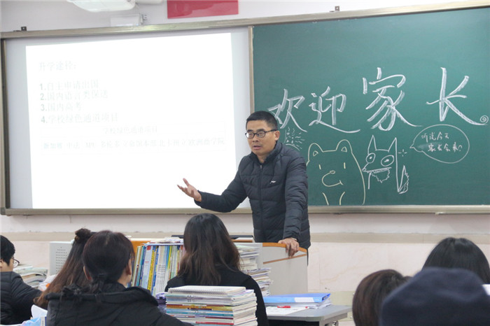 朱老师介绍了我校的多元升学情况,解读了校荐国外高校的推荐规程,他希望家长们及时了解相关信息,帮助孩子做好升学规划。朱老师还希望家长多关注孩子的思想和心理状态,教育引导孩子学习和活动、校内学习和校外学习统筹兼顾,着眼长远,着力全面提升综合素质。