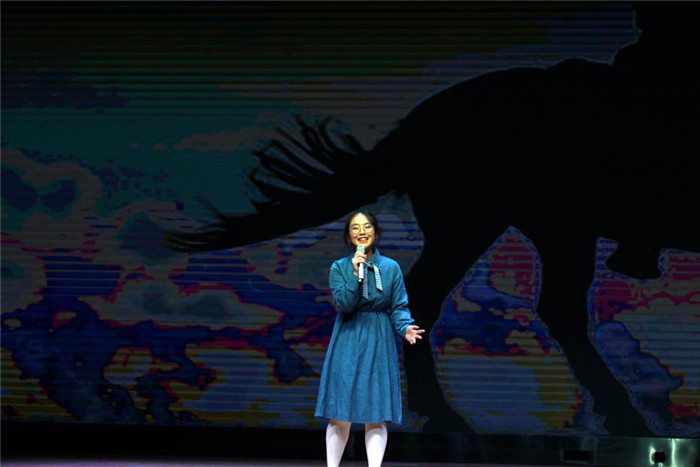 朗诵解读:情节分为起航,撞上南墙,挣扎以及重生,以演员朗诵的起伏来表现场景中主角的情感变化,为舞台去营造尽可能戏剧化的效果,借助表演的调动舞台气氛的同时疏通朗诵的情感基调。麋鹿,常青藤以及海洋充当帮助者的形象,以表现青春生活中孩童能够受到的帮助与援手,以南墙的形象关联无可撼动的艰难险阻,最终将飞越南墙作为结尾升华主题。