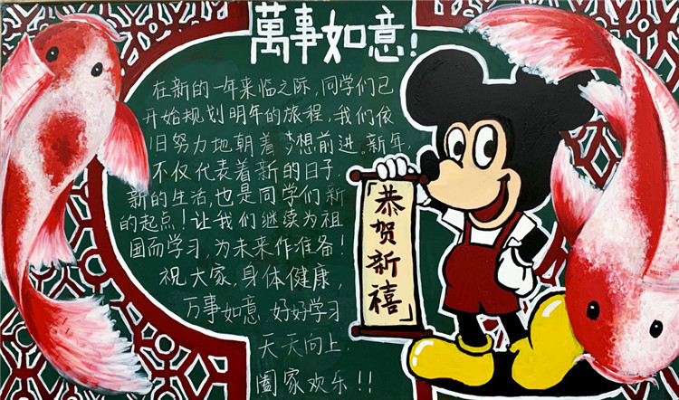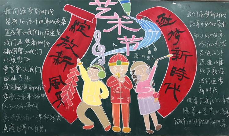 2019年12月底,我校组织开展了艺术节迎新班级板报评比活动。本次板报围绕艺术节主题——“逐梦新时代,绽放新风采”进行设计,不仅体现了同学们良好的艺术素养和审美水平,也表达了对新年到来的美好祝福与憧憬。