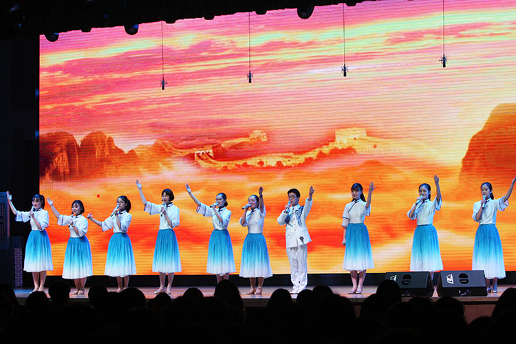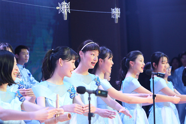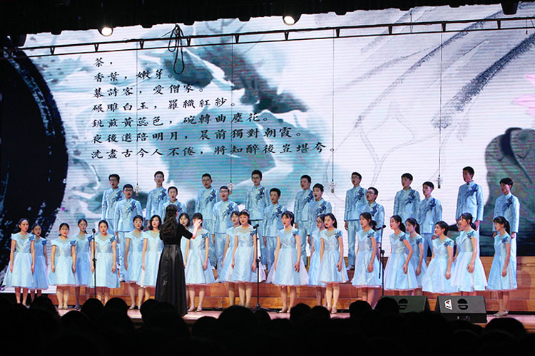 接下来,校艺术团节目纷纷登台。合唱团打破了往常两首歌曲的常规,今年献上了三首作品:《那茶那塔》、《天空》、《雨中即景》,其中还有合唱团今年参加省赛获奖的作品,动听而有意义。当大家还沉浸在美好的歌声中时,校器乐团又带来了器乐合奏《瑶族舞曲》《顾山春》等曲子。校舞蹈队今年向我国航天事业致敬,献上优美的舞蹈《逐梦云天外》。