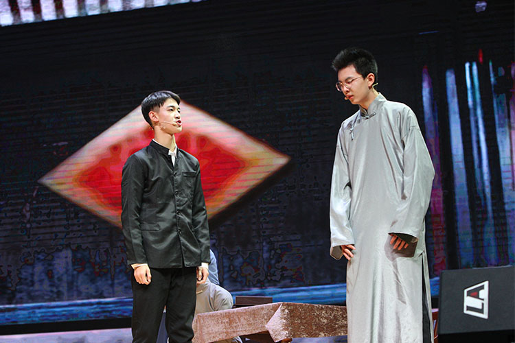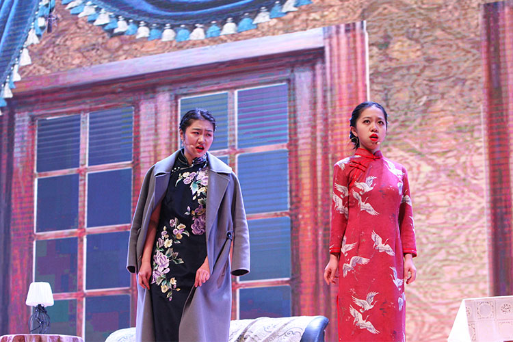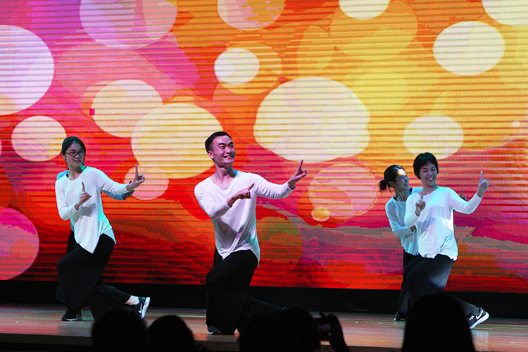 除了艺术团,各年级的同学也带来了精心排练的节目。高三的《风声》、飞扬剧社的《家》、高一年级的《永不消逝的电波》……演员们出色的演技,为同学们带来了不一样的戏剧体验。剑桥高中和初一年级带来的歌舞表演,也是充满活力,令同学们掌声连连。而最令人期待的不外乎每年的教工节目。今年音体美组的老师们带来创意广播操,老师们年轻时的靓照,难得一见的舞姿,让同学们激动得忍不住尖叫。在晚会的尾声,海外归来的优秀校友来墨凡学长为同学们深情献唱。在无尽的回味之中,文艺汇演圆满落下帷幕。
