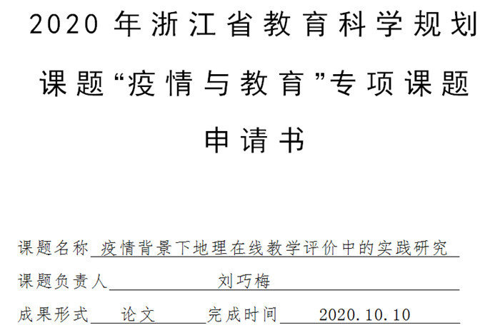 积极申请省“疫情与教育”规划课题:《疫情背景下地理在线教学评价中的实践研究》