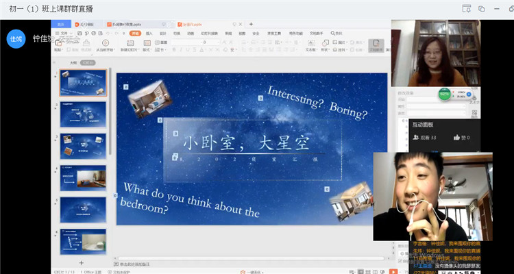 一提起在学校里的班会课,我们的耳边就会响起同学们的欢声笑语。那么,我们的线上班会课又有什么独特的味道呢?林老师说过,“我们的班会课也是给同学们锻炼的一个良好平台。”很多同学都在班会课上大展风采。