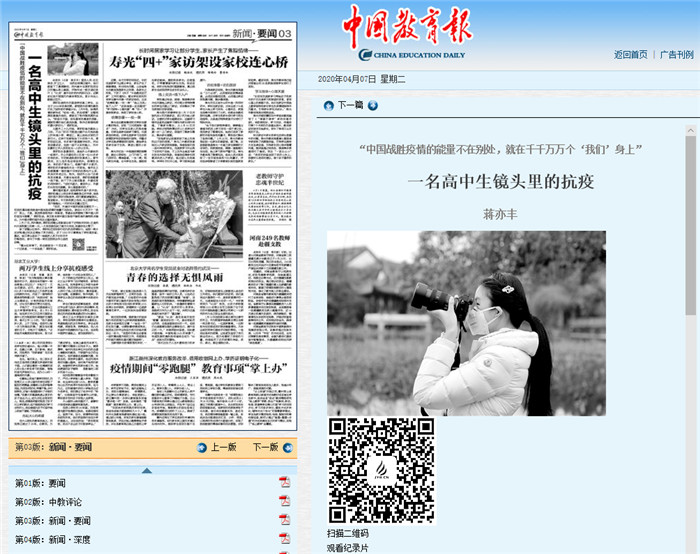 一名高中生镜头里的抗疫——我校学生自制双语纪录片获媒体广泛关注