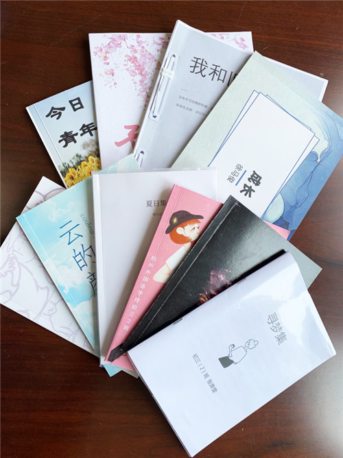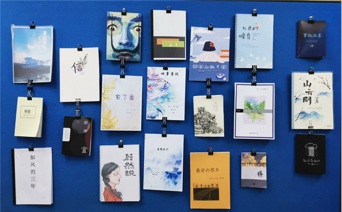 在老师的一番挑选后,几乎大部分同学的文集都受到了认可。从内容的编排到版面的设计,从整体风格的设定到文集的命名,可谓精彩纷呈。展出的第一天,就有文集陆续被同学们取下欣赏。