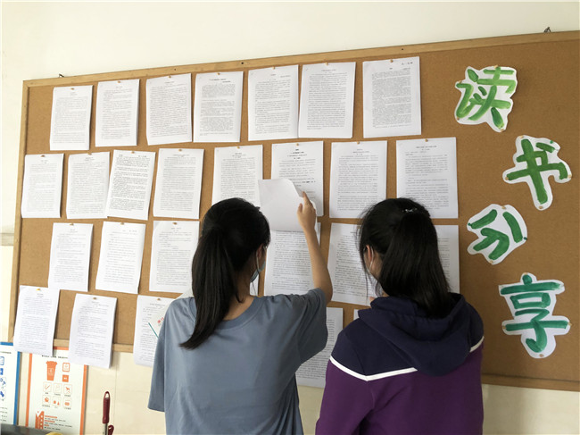 高一的同学们阅读范围很广,且不局限于推荐书单上的书目。从理论分析的哲思著作《文明的冲突与世界秩序的重建》,到文学性较强的经典名著《红楼梦》;从西方空想社会主义的《乌托邦》,到中国古代道家的《道德经》。5月7日,每班分别选出了五到十篇优秀读书报告在年级展板上展出。本次高一年级“读书分享会”让所有同学都从书中得到了收获,从分享中得到了提升。