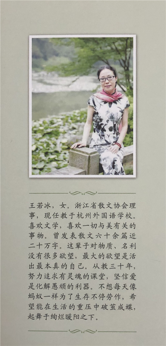王若冰是我的平阳同乡,她先生是我的中学同学。不过更重要的关联,她是我儿子在杭外上学时的语文老师,而且这语文老师贯穿了初中和高中的六年。