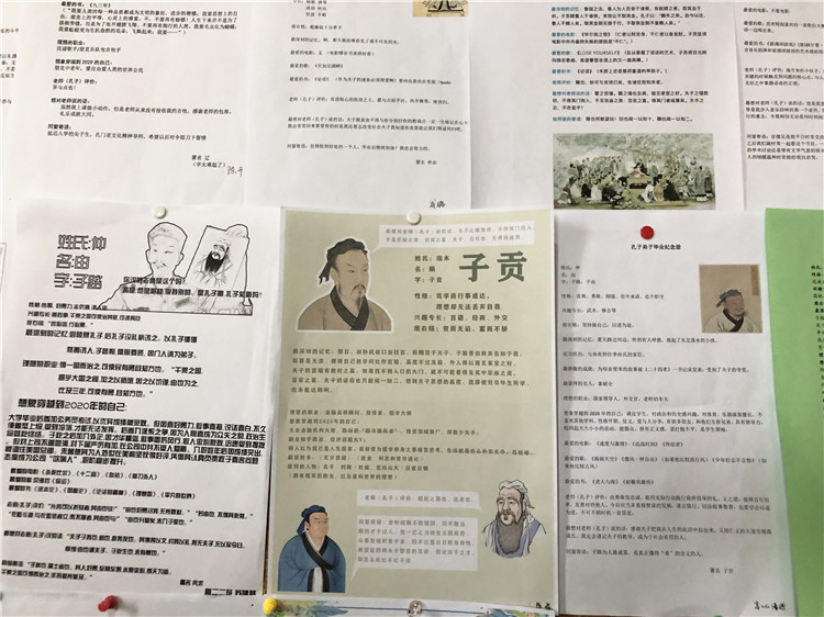 而在回归校园生活后,为进一步激发我们的学习兴趣,高二年级语文备课组老师策划了一次“孔子弟子毕业纪念册”设计活动,每位学生可以选择一位自己最喜欢、最感兴趣的“弟子”,考据相关资料,为其设计一张“毕业册”的“个人简介”,用现代的方式呈现经典的故事与桥段。