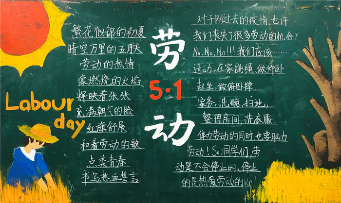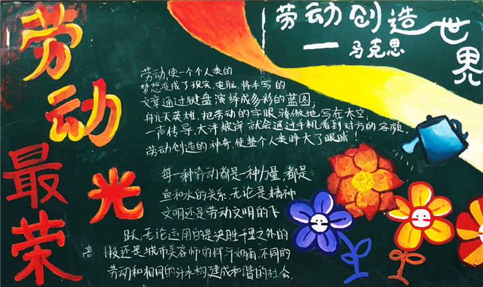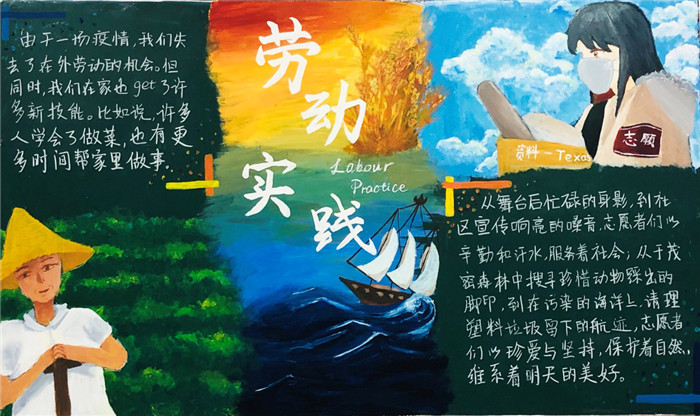 今年的5月1日,是新中国成立以来的第70个劳动节。为弘扬与提倡劳动精神,引导学生崇尚劳动、尊重劳动,学校组织了以“劳动创造美好生活”为主题的班级板报评比活动。各班认真组织,精心设计,结合疫情期间的居家劳动经历,深入体会对劳动实践教育的理解。希望同学们能认真感悟,努力坚持实践,在劳动中成长,创造属于自己的美好生活。