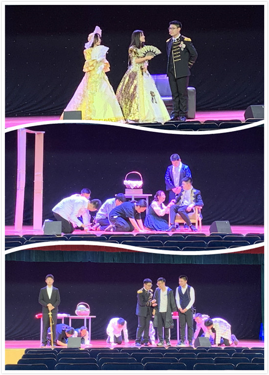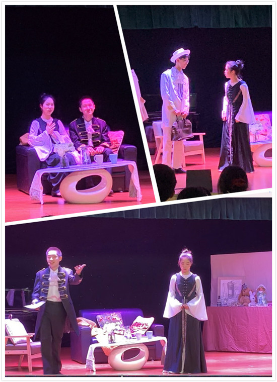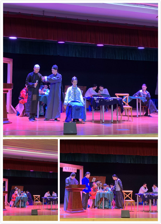 在接下来的几周里,常常会看到各班的导演,演员们利用午休时间到对面的实验楼里一遍又一遍地对词,排练。每一位导演的台本上都画得密密麻麻,满满当当地写上了批注。道具组的同学们也纷纷找来了家中的酒杯,花瓶,甚至在网上购置了精美的桌椅台布……一切都进行地有条不紊。引用一句莎士比亚的话:“戏剧是时代的综合而简练的历史记录者。”我们在这次活动中不仅仅只是欣赏了4部精彩绝伦的戏剧,更是通过编导,亲身参与演出经历了剧中的情节。我们穿越回18世纪的英国,和娜拉一起在男权社会中觉醒,摆脱“泥娃娃”的称号;我们来到19世纪的俄国,与假钦差大臣一起上演一出充满讽刺的喜剧;我们回到抗战时期的中国,在枪林弹雨声中体会到了红军精神;我们也来到了大半个世纪前的茶馆,在几位老北京们的谈话声中听闻社会的黑暗……
