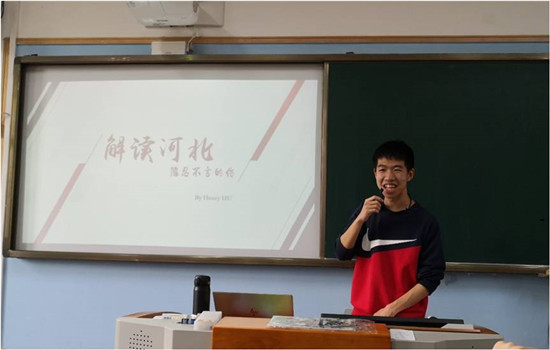 了解一个地区,应该从它的地理开始。胡雨海同学的演讲给我们都留下了深刻的印象。一开始,河北在我的眼中就是一个普普通通的北方省份。但是在胡雨海同学的演讲中,通过对它自然地理和人文的剖析之后,我才发现这个普普通通的省份背后也有很多不为人知的心酸,也有浓厚的文化底蕴。