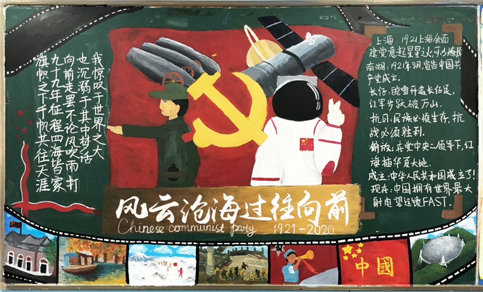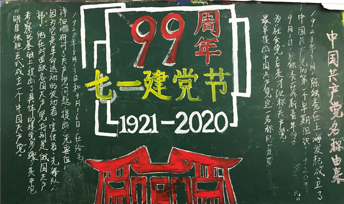 2020年7月1日是中国共产党成立99周年,为了让同学们更好地了解党的光辉历程,增强党史知识的学习,我校组织举办了庆祝建党99周年班级板报评比活动。各班级认真组织,精选题材,充分展示党的发展历程、重要抉择以及所取得的伟大成就,起到了良好的宣传教育作用,增进了全校师生的爱国主义情感。