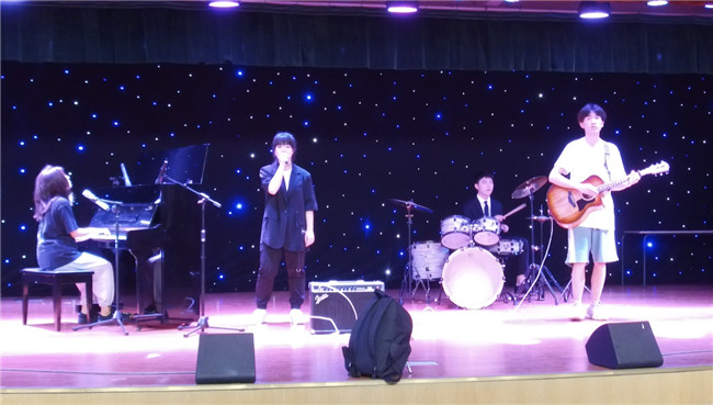 首先是高一乐队(Y1A章曼旎,Y1B张彧菡、王恕、徐亦宽)带来的《小情歌》,他们默契的配合,完美地诠释了这首歌所想传达青春独有的纯粹,在天空,在大地,在阳光,在水汽。没有复杂的旋律,简简单单却直击人心。