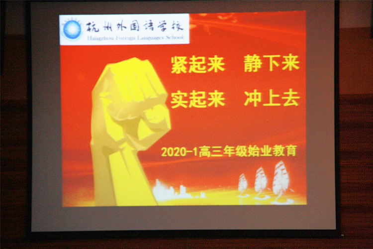 吴校长介绍了学校今年针对高三年级的教育教学安排,分析了近三年来的升学情况,希望同学们增强自信,鼓足干劲,奋勇向前。吴校长指出,经过多年杭外文化的浸润,同学们在思维品质、学习能力上是有巨大潜力的,他建议同学们树立目标、找好方法、科学复习、坚持不懈,保持积极阳光心态,以坚定的信心和顽强的意志投入高三的学习生活。