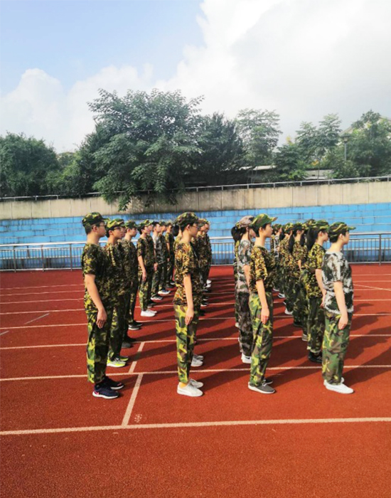 结束早饭后元气满满的我们准时回到了训练场地。遵照教官的要求,在教官严厉却又暖心的背对太阳训练条件下,我们努力学习,认真站立,任凭汗如雨下、浸透衣衫,也没有丝毫的懈怠,此时的时钟仿佛被刻意拨慢,短短几分钟却仿佛过了一个世纪。膝关节开始隐隐作痛,脚底板开始逐渐麻木,这些令人难以忍受的症状却在我们想起“毅力”二字时全部被克服。印象最深的莫过于唱军歌时那嘹亮的歌声以及最后那声响彻天际的“杀”字,虽然未见真正的战场,但已感受到军人的铁血力量。