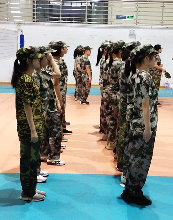 清晨,我们被铃声赶出房间,睡眼朦胧地走向操场集合。担忧和期待在笑声中蔓延。教官很严厉,一见面就让所有人绕操场跑两圈。早上的太阳正逐渐露出云层,日晒和劳累将久未锻炼的学生突感身体不适。我也终于没有坚持住,退到了一边。学习内容并不难,一天下来所学的不过是立正、稍息等基本动作,但要把简单的动作做得标准,却是难以形容的累。训练、吃饭、休息,日程安排很简单,但时间相当紧张,还未来得及休息,下一个任务就开始了。于是四周尽是叫苦声。训练结束后无人不是狼狈不堪,同时我们不得不承认,自己的体能大大提升了。