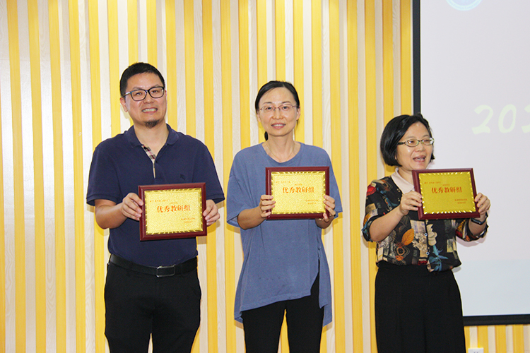 9月11日下午,我校在2号楼报告厅举行一年一度的庆祝教师节大会。大会对我校从事教育工作满30年的教职工表达敬意,对2019学年优秀年级组长、班主任、导师,2019学年优秀教研组、教研组长、教科研先进个人予以表彰,并对全体教职工一年来所付出的辛勤劳动和取得的优异成绩表示肯定。校长方健文教授、党委书记徐继彬、副校长吴锋刃、副校长张俊峰出席大会,并为受表彰集体和个人颁奖。大会由吴锋刃副校长主持。