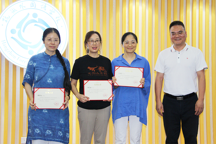 大会还举行了新教师拜师仪式,三位新老师分别为他们的指导教师献花致敬。我们相信,通过一代又一代杭外教育人的接续奋斗,学校发展一定能更上一层楼,杭外的明天一定会更加美好。