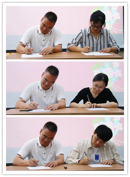 (徐继彬书记现场与三位教师代表签订承诺书)