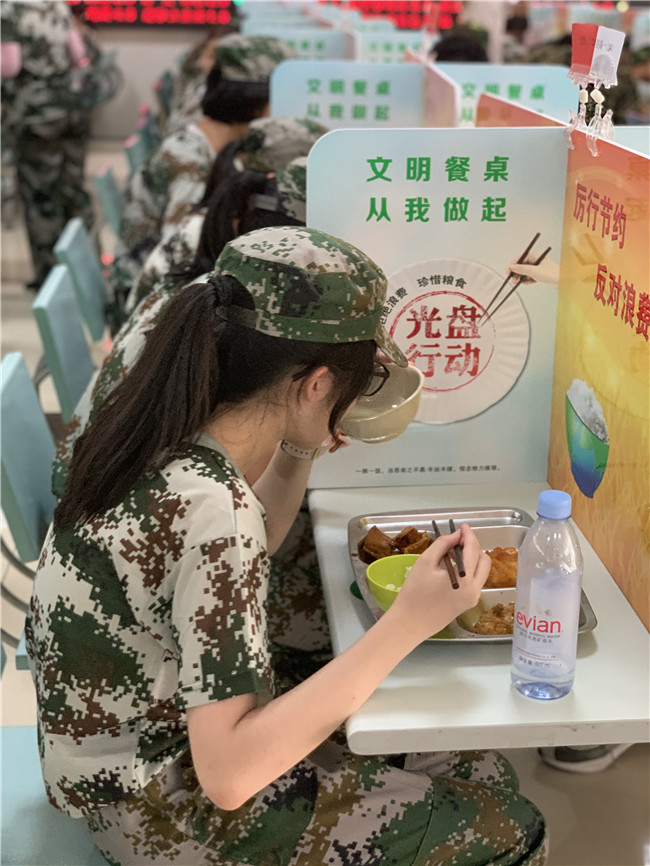 “将士们!听党指挥,能打胜仗,作风优良!”唱军歌俨然成为了吃饭前的必备节目。同学们扯开了嗓子放声高歌,无限表达心中对军队的敬佩和赞美。