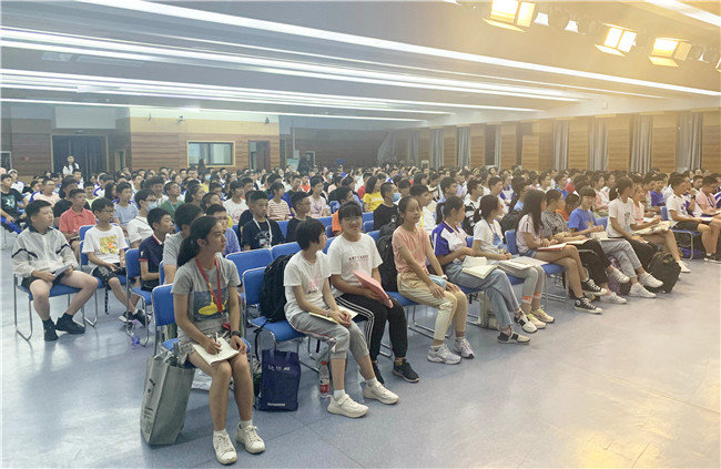 9月6日,夜将最后一束阳光轻柔地洒在杭外校园。远处,淡粉色的晚霞将小和山笼罩,一切都是安静的。然而,在1号楼六楼的报告厅中,别有另一番景象。