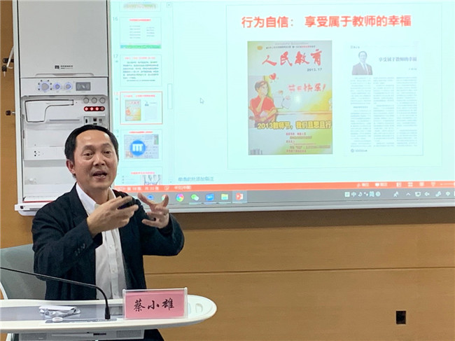 蔡校长最后总结说,做教育不应做拔苗助长者,要做学生成长的引路人。教育需要优秀的老师,老师也应该享受属于教师的幸福。蔡校长的讲座让我们感受到了他作为一名教育领路人的风趣可亲、坚定热忱,让我们在教育之路上有了更强的信心与动力。