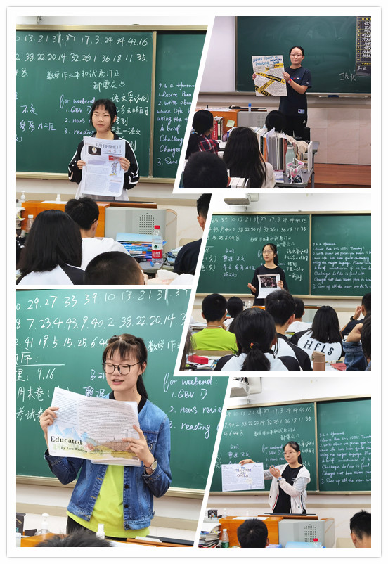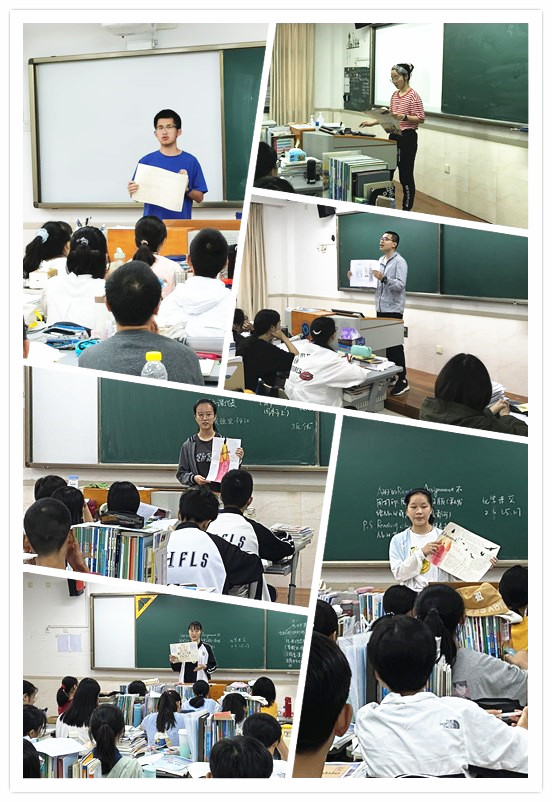 当我们高二6班的五位同学站在高一6班的门口时,我们不禁感叹,一年春去秋来,如今我们已作为高二的学长为学弟学妹们分享暑期里我们读过的好书。在教室门外我们互相鼓励,为彼此加油打气,也正是这股相互给予的勇气让我们能在讲台上侃侃而谈。同学们手握精心制作的海报,为高一6班的同学们开启一场奇妙的阅读之旅。打头阵的同学运用诙谐幽默的语言和淡定从容的气场讲述神秘的吸血鬼伯爵的故事,赢得了同学们热烈的掌声;随后的同学在三尺讲台之上畅谈教育的重要性与自己独到的理解;也有同学向大家介绍享誉全球的经典名著,如《契科夫小说选》等。同学们热情的反馈让我们成就感满满。太阳高高升起,年轻的学子也在HFLS这片学习的乐土上开启他们崭新的学习生活。