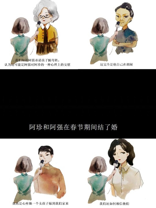 这次采访剧制作让我们收获了意外的惊喜。通过这次活动,我们得到了全面提升,比如如何处理幕后台词和镜头的安排,演员在镜头前如何表现情感的张力等。总之这份作业不仅是一次考验,更是一次机会。为了探究有关乡土社会中的婚姻观及其习俗等问题,大家都付出了很多努力,进行了很多思考,也收获了很多的感悟。