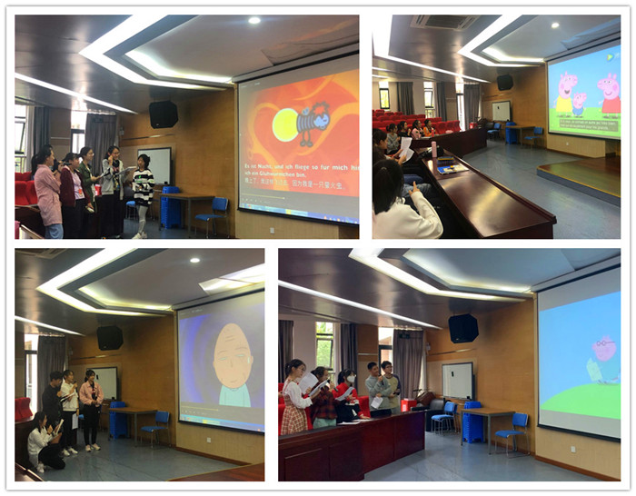 为了准备这次活动,每位同学早在暑假就开始踊跃试练。活动当天,每一组上台表演的同学呈现出的效果都格外惊艳。由于每门语言都有属于自己的个性特色,听众们领略了不同风格的配音,法式幽默令人捧腹大笑,德语歌剧分外深入人心,西语真人秀带领大家一览热情,日语动漫更是引起了全场的共鸣。不得不说,这些配音表演不仅仅是同学们对多语种语言的深度操练,更是一场视觉与听觉的盛宴。