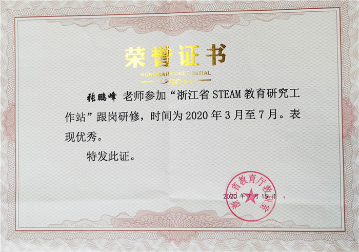 随着人工智能时代的到来,培养学生STEM学科方向的兴趣和创造力越来越重要。为了更好地推进全省的STEAM教育工作,浙江省教研室成立了STEAM工作站,选拔骨干教师、学校校长、区域STEAM教育负责人等入站学习、工作,入站人员参与STEAM教育研究,协助STEAM教研活动的组织。作为STEAM种子学校,为了推进我校STEAM教育的发展,学校积极支持张鹏峰老师入站工作学习,入站时间为2020年1月至2020年7月。