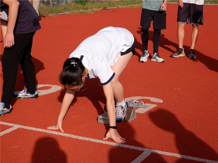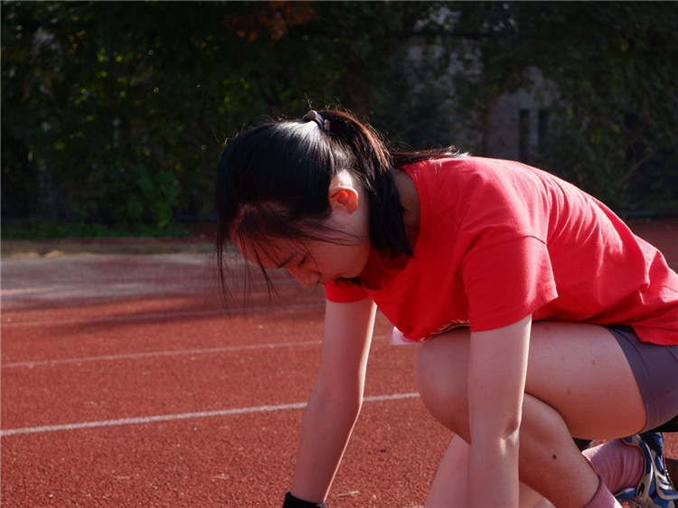A:我一般是提前一周开始训练的,和我们班参加800米的同学一起运动,共同进步嘛。(笑)