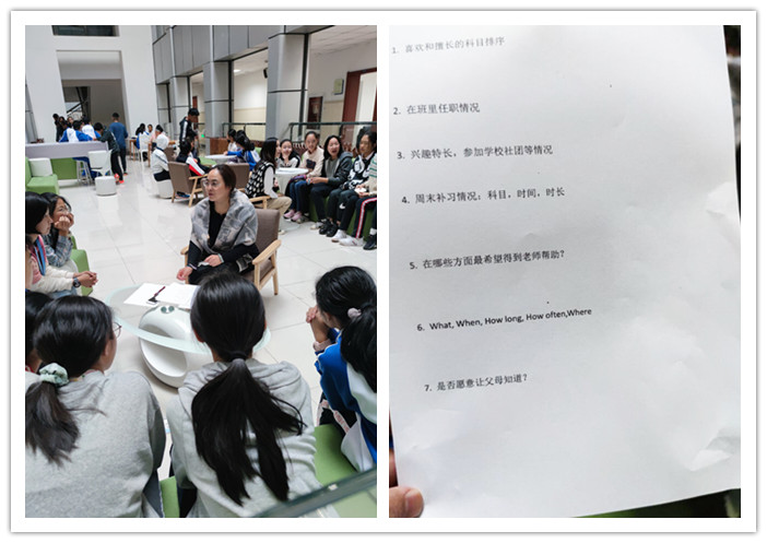 下午3:30分,担任本年级导师的教师分别在教室、休闲吧、辅导室等约定好的地点与各自导学的学生见面。和导师原本很熟的同学显得热情而充满新的期待,初识导师的同学稍稍有点拘谨同时又充满好奇。有的同学还沉浸周末“抢导师”的兴奋之中,偶尔还会冒出“老师我终于秒杀到了你”之类令人莞尔的话语,而更多的是一连串的充满向往期待的问句……