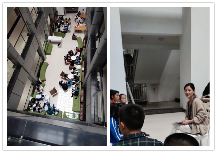社会组的老师早早就“占领”了有利地形,在明亮的“云顶”休闲吧里,郑黎丽老师在亲切地和学生们交谈。