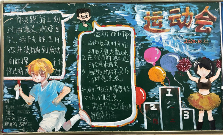 10月22—23日,我校举行了2020年体育节暨第55届田径运动会。在学生处、年级组的组织下,各班积极准备,在个人、集体比赛项目中都展现了良好的精神风貌,较好地体现了“健康、合作、超越”的赛会主题。体育节结束后,各班通过班会课认真总结,并以主题板报的形式加以呈现,有力地增强了班级凝聚力与集体荣誉感。