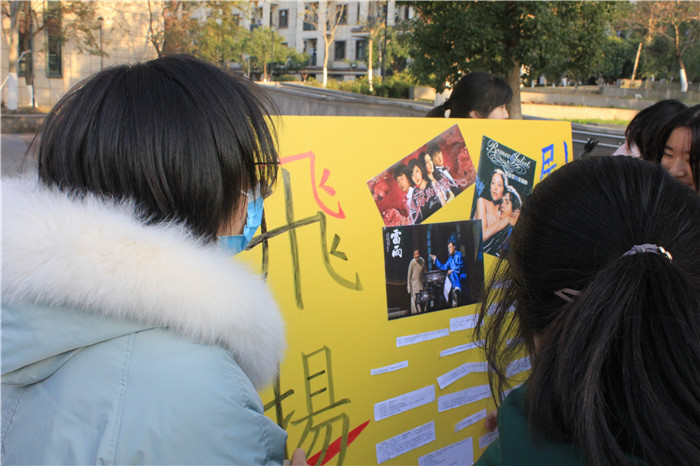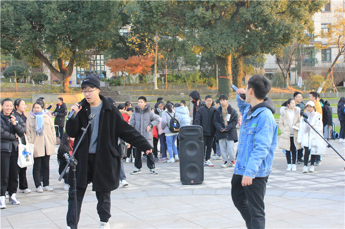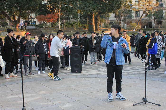 将目光聚焦广场中央--来一睹杭外学子大放光彩。从格子音乐社、日语社、飞扬剧社的歌曲,到街舞社的帅气舞蹈《前夜》,再到嘻哈社的精彩说唱、美漫社的微电影宣传……舞台虽小,但足以让同学们一展风采。