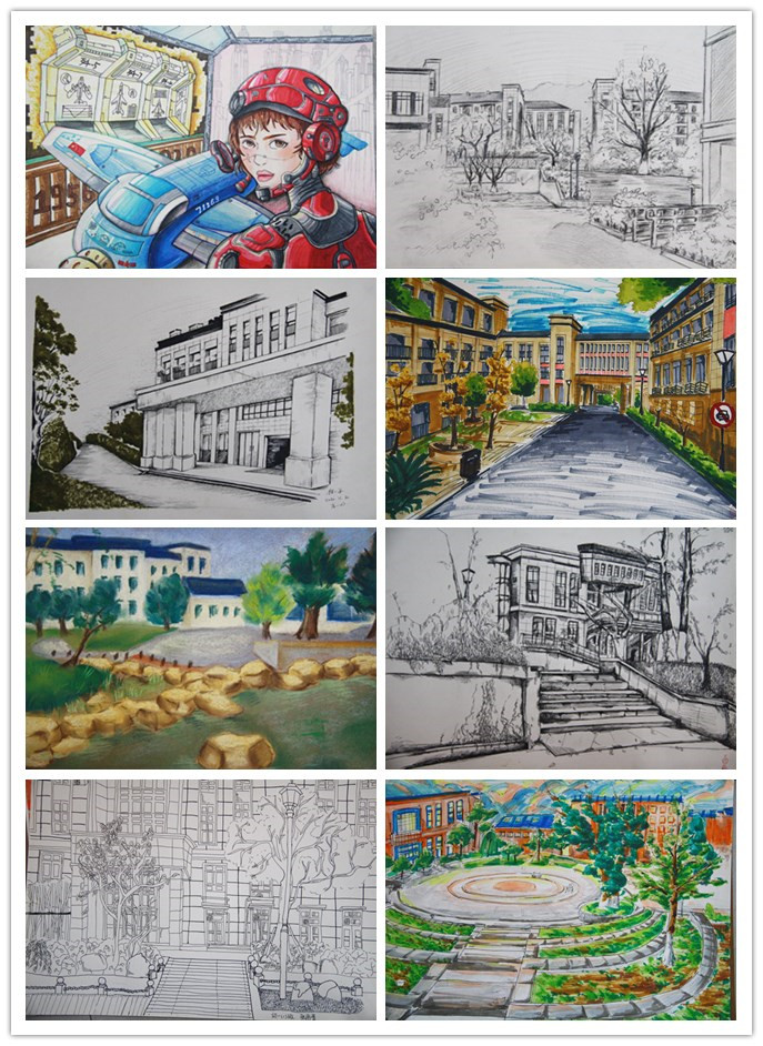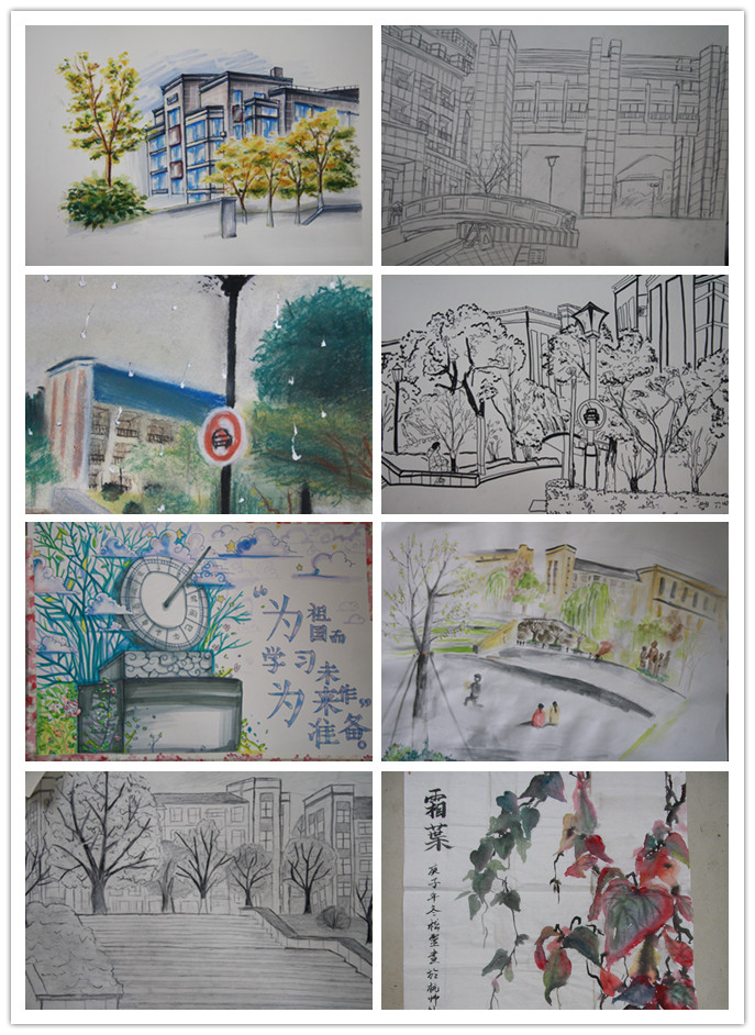 也许,画笔并无法描绘校园的全部美丽,但同学们对学校的热爱与眷恋,从心中流出,自指尖洒出,跃然纸上。