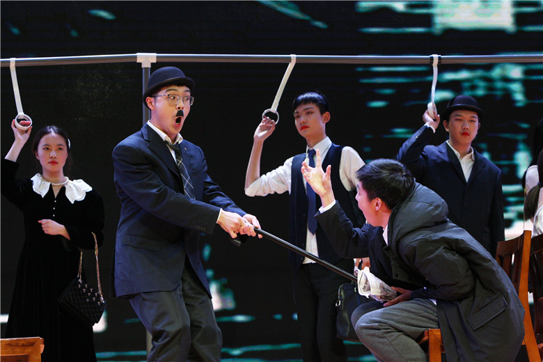 初二年级的情景短剧《飒》与初一年级的歌舞《我们都很棒》展现了杭外莘莘学子的风貌。高一年级所演绎的校园剧《芸芸》真实地反映了疫情时期学生在家学习的状态,同学们都在四个主角上找到了自己的影子。高三7班突破往年艺术节传统,将默剧《城市之光》搬上舞台,以这种方式致敬卓别林。