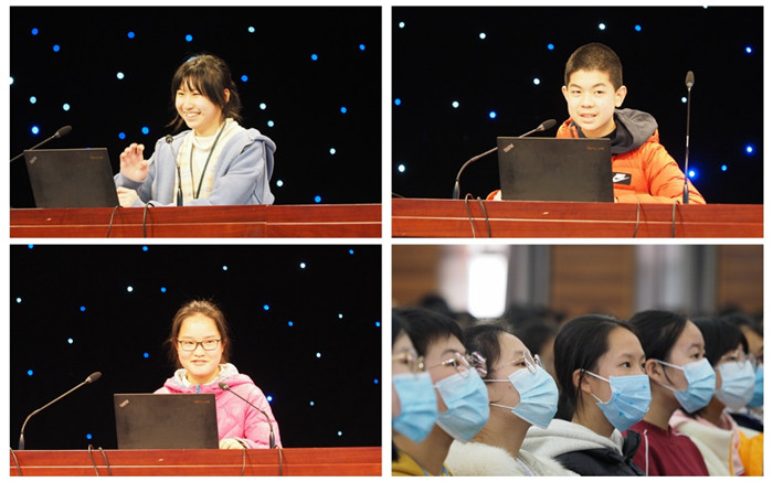 第一部分是“每月之光”评选活动的代表分享。初二(4)班的张雨微以“与书和解”为题,讲述了在寒假生活中,她与书的趣事。她不仅介绍了读书的好处,更是向我们的阅读提出了从诗到短篇小说,散文,再到长篇小说的递进顺序,为我们的阅读提供了自己的小妙招。初二(6)班的何玥琳同学用一段法语引入每月之光的介绍更是让同学们赞叹不已。她用诙谐的语言讲述了六班每月之光的由来,分享了一些小趣事,谈每月之光给自己带来的收获,也对同学们进行了鼓励,希望更多的同学能荣获每月之光,为班级做出贡献。