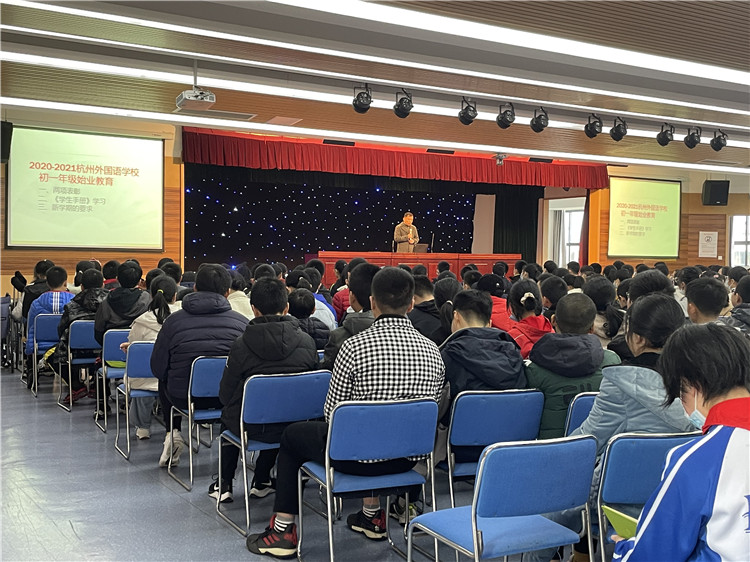 2月28日是学校的开学日,报到伊始,初一年级随即召开了新学期的始业教育大会。