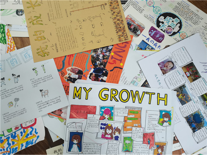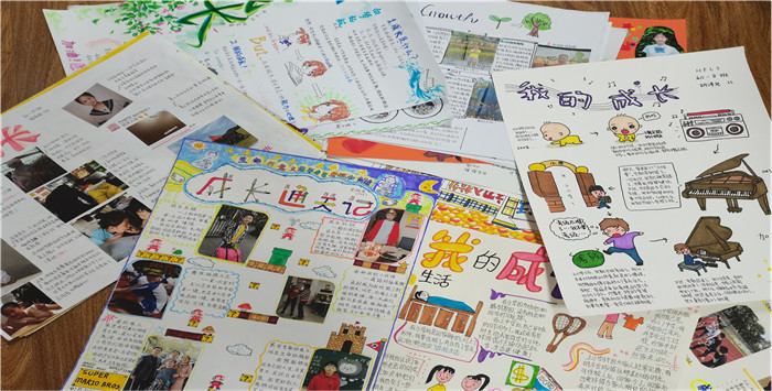 寒假里,初一年级的同学们用自己的方式制作了一份“我的成长”主题小报。