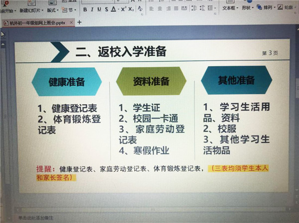 第二,布置了本学期的重要事项,让家长和同学早知道早准备,在思想上也更早更快地进入到学校的节奏之中。